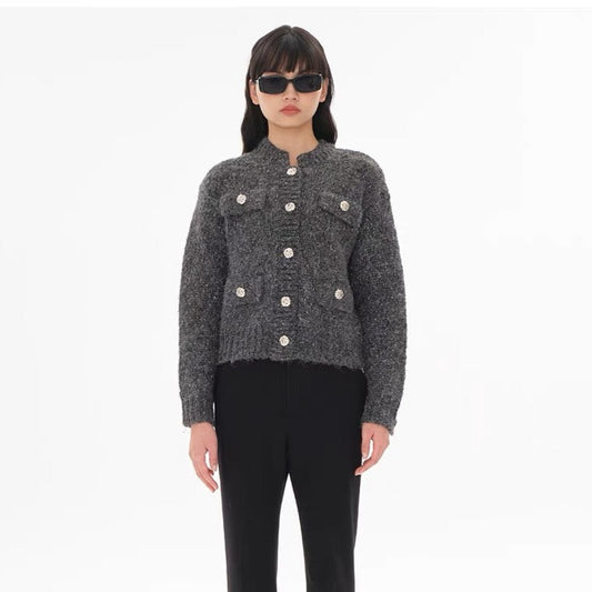 Concise-White Tweed Knitted Cardigan Grey