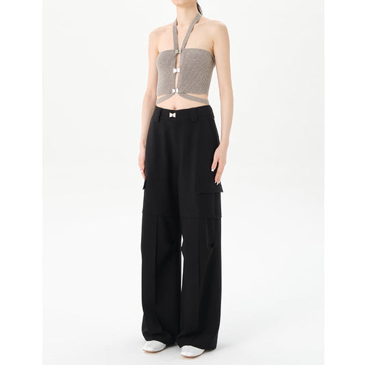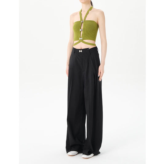 Concise-White New Chinese Style Two-Piece Halter Dress Black