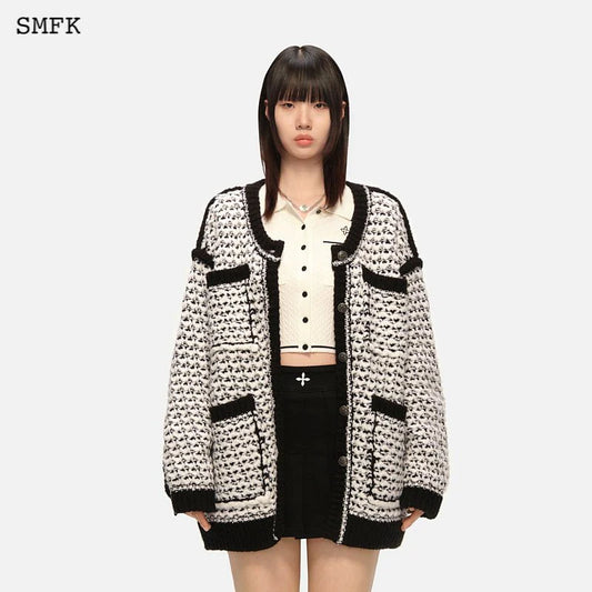 Concise-White Shell Button Long Sleeve Cropped Cardigan and Skirt