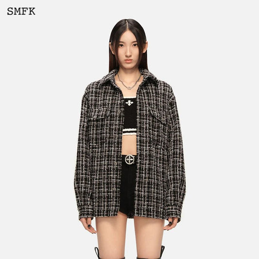 THREE QUARTERS Check Pattern Tweed Coat Red