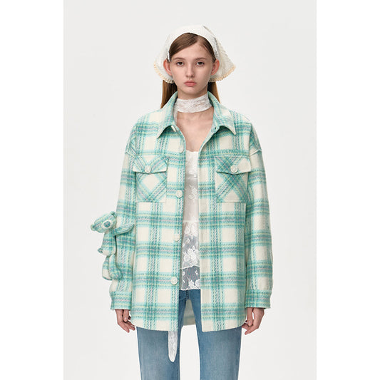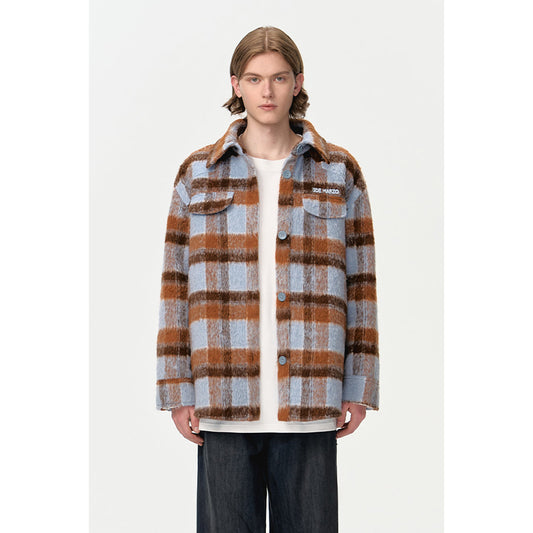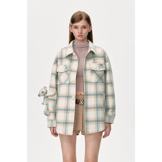 13DE MARZO Bear Tweed Plaid Shirt Blue
