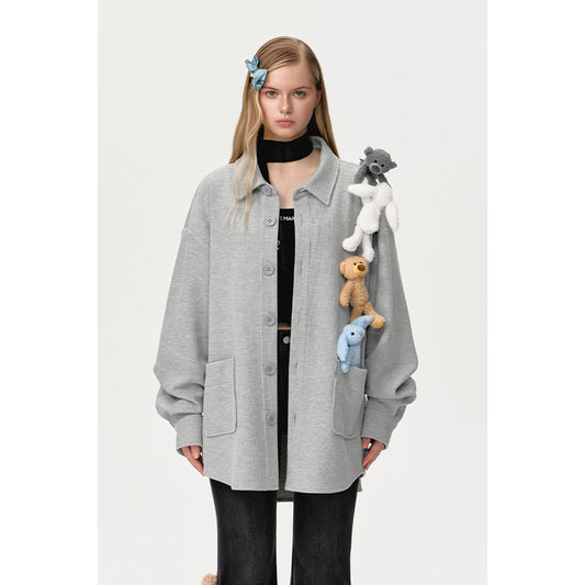 13DE MARZO Plush Bear Friends Waffle Check Shirt Grey