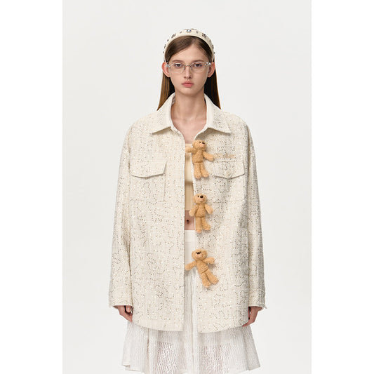 13DE MARZO Doozoo Shining Tweed Shirt Beige