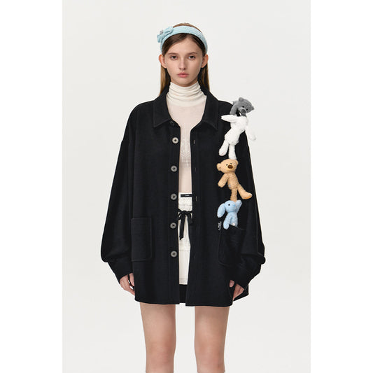 13DE MARZO Plush Bear Friends Waffle Check Shirt Black
