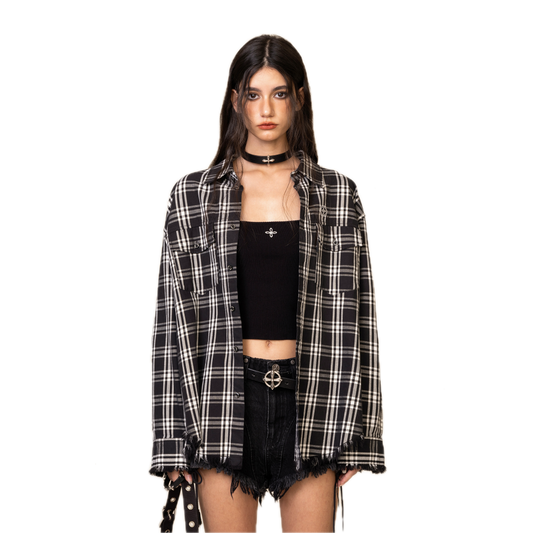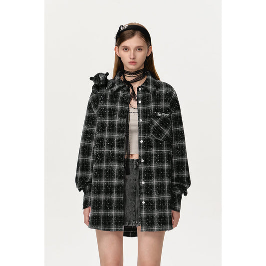 13DE MARZO Bear Sparkly Drill Plaid Shirt Black