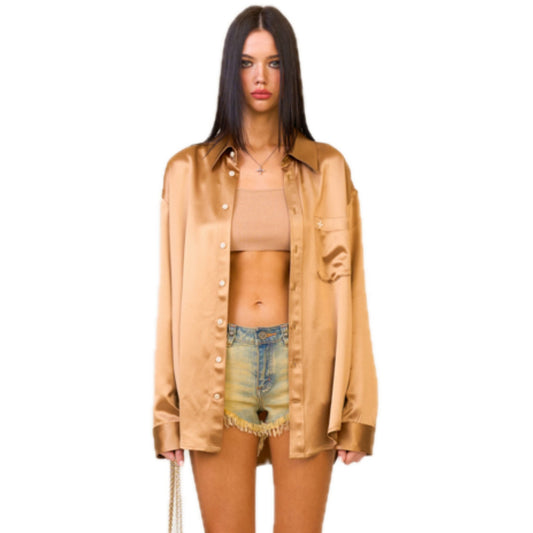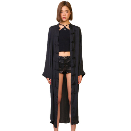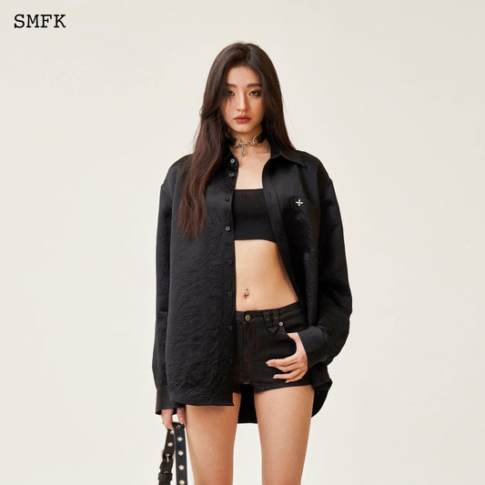 SMFK Compass Cross Classic Satin Loose Shirt In Black