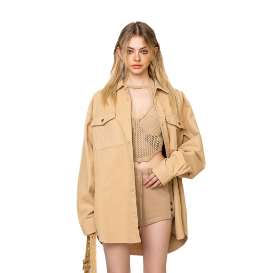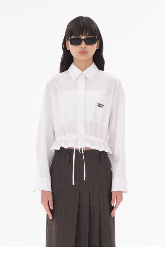 Concise-White French Retro Waistband Long Sleeve Shirt White