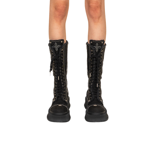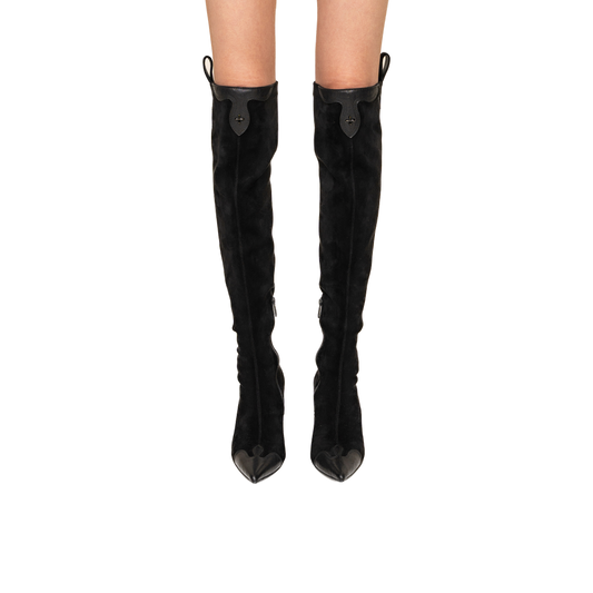SMFK Compass Cross Black Velvet Over-The-Knee Boots