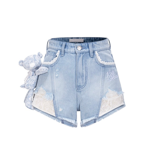 13DE MARZO Bear Lacy Denim Shorts Blue