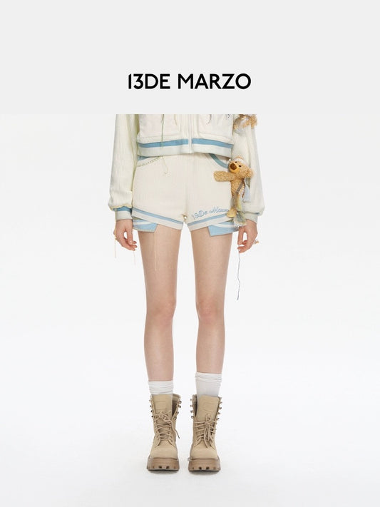 13DE MARZO Bear Deconstruct Knit Shorts Beige