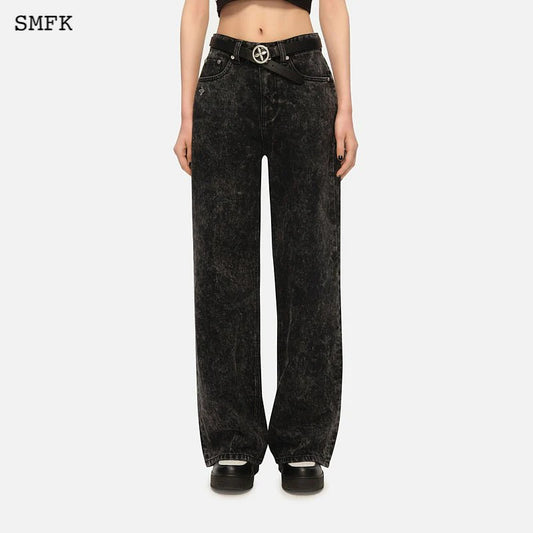 SMFK Black Snowflake Vintage Wide Leg Jeans Black
