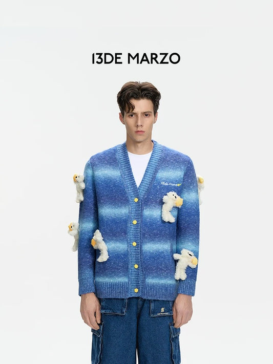 13DE MARZO Lumi Star Bear Knit Cardigan Swedish Blue