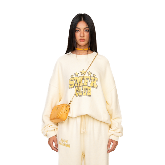 SMFK Compass College Vintage Oversize Sweater In Cream