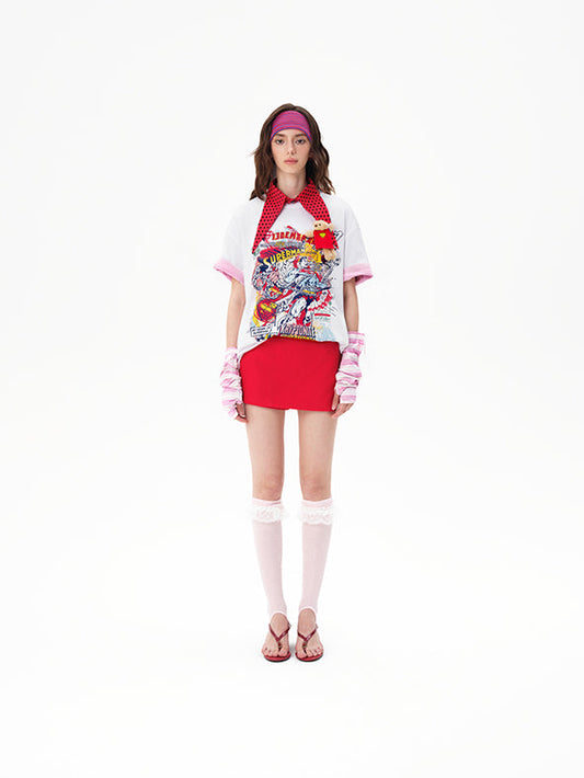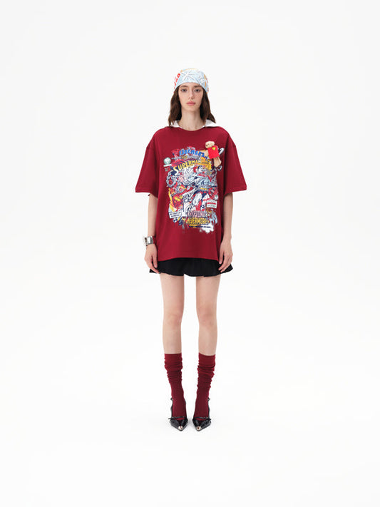 13DE MARZO x Superman Bear Illustrated T-shirt Red