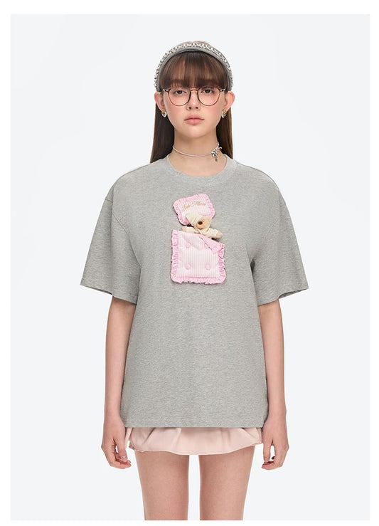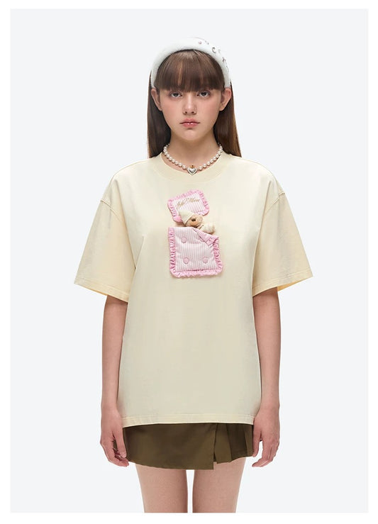 13DE MARZO Sleeping Bear T-Shirt Beige