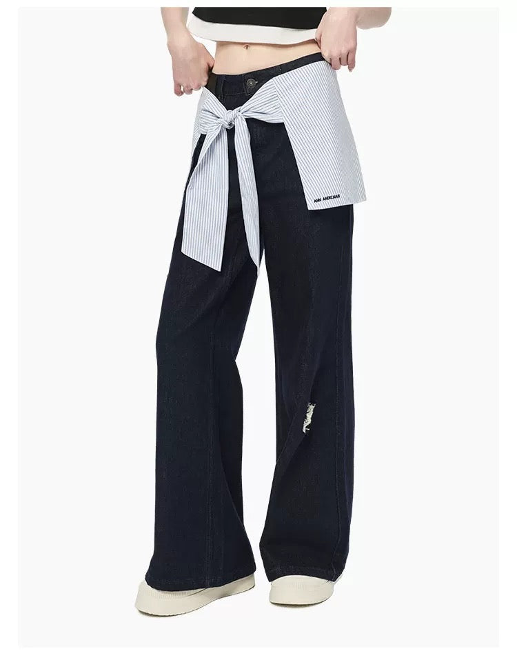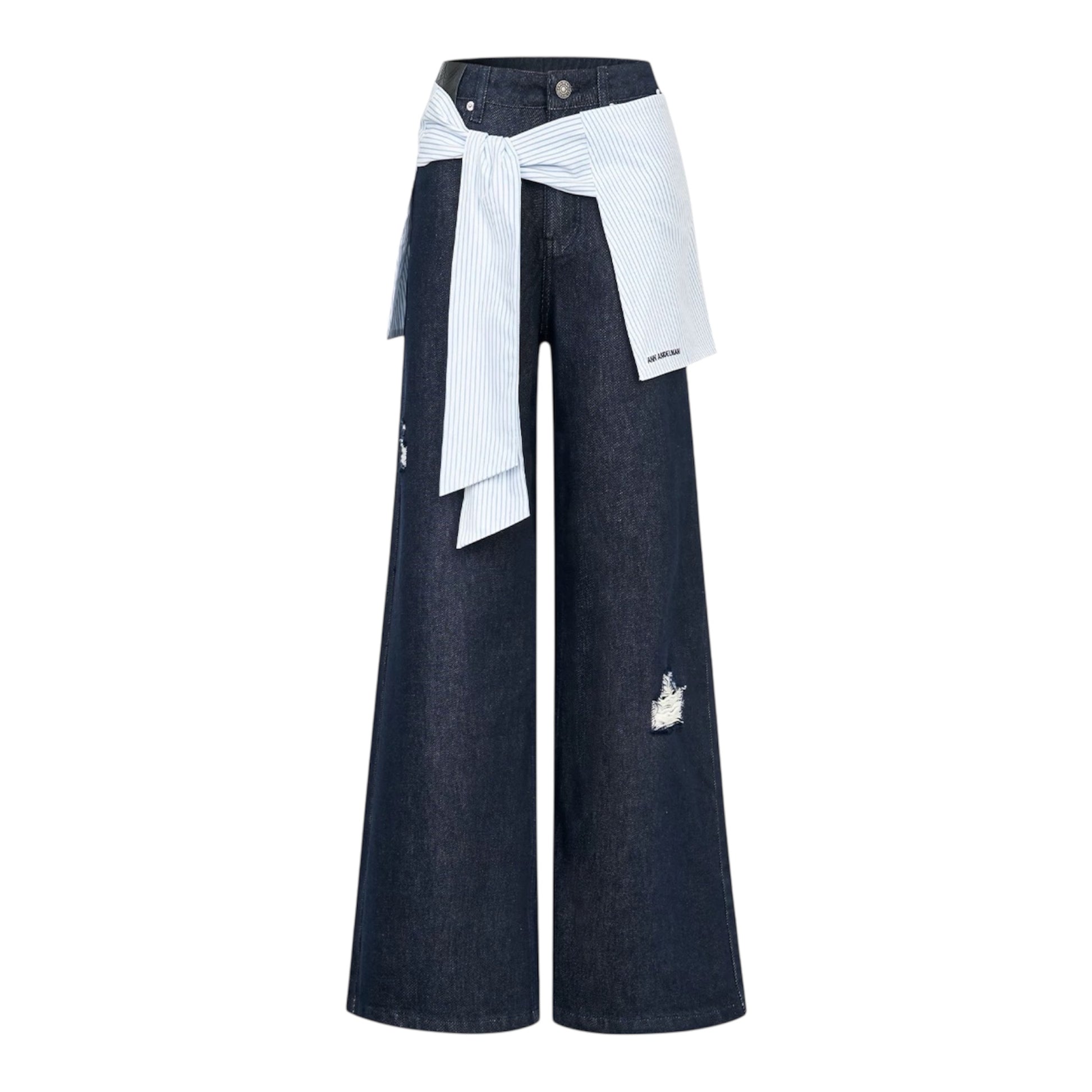 Ann Andelman Dark Blue Jeans With Shirt Tie Detail