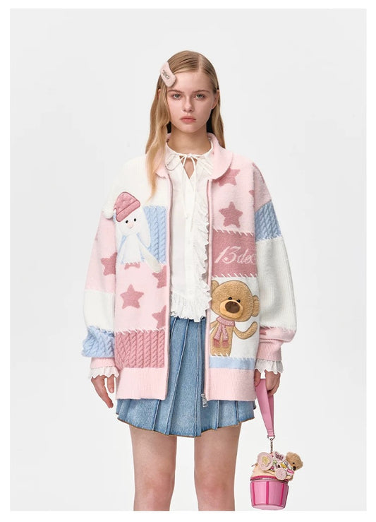 13DE MARZO Bear Baseball League Jacket Navy Blue