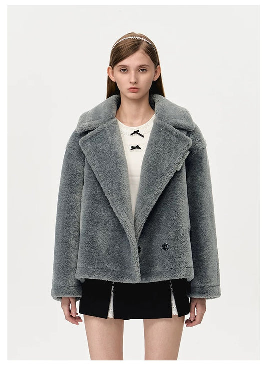 13DE MARZO Bear Sleeve Corduroy Baseball Jacket Grey
