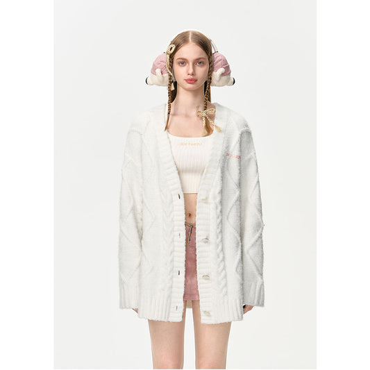 13DE MARZO Doozoo Pearl Embroidery Cardigan White