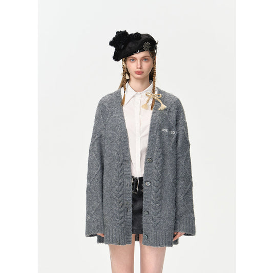 13DE MARZO Doozoo Pearl Embroidery Cardigan Gray