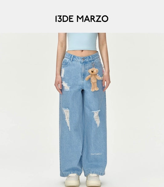 13DE MARZO Graffiti Logo Denim Jeans Blue