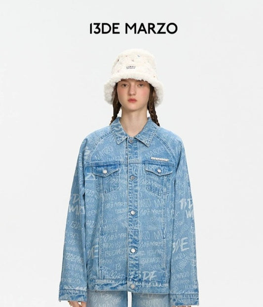 13DE MARZO Graffiti Logo Denim Jacket Blue