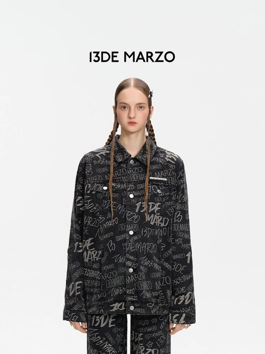 13DE MARZO Graffiti Logo Denim Jacket Black