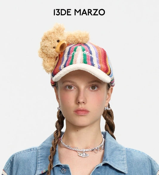 13DE MARZO Colored Yarn Bear Cap Colorful