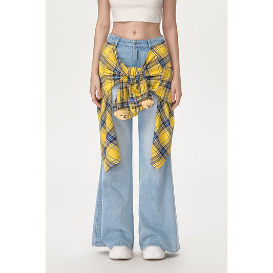 13DE MARZO Detachable Shirt And Washed Flare Jeans Set Blue