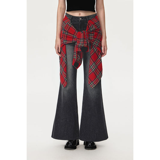 13DE MARZO Detachable Shirt And Washed Flare Jeans Set Black