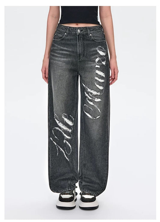 13DE MARZO Distressed Logo Decorated Jeans Black