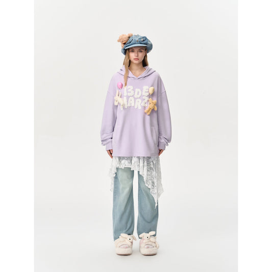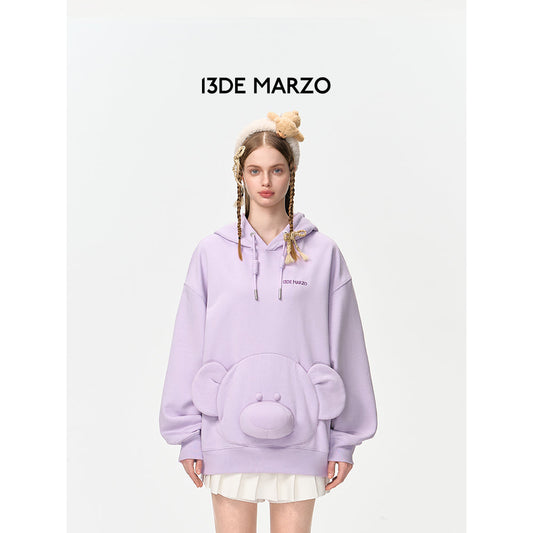 13DE MARZO Bear Embossment Pocket Hoodie Purple
