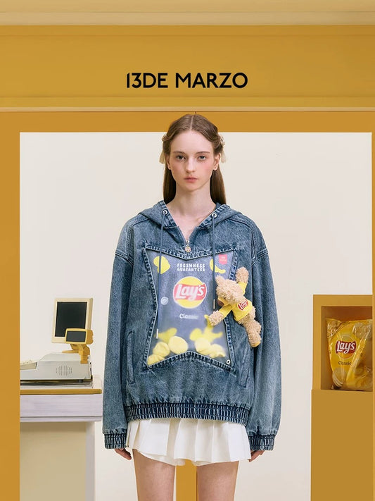 13DE MARZO X Lay's Flavor Bear Denim Hoodie Blue