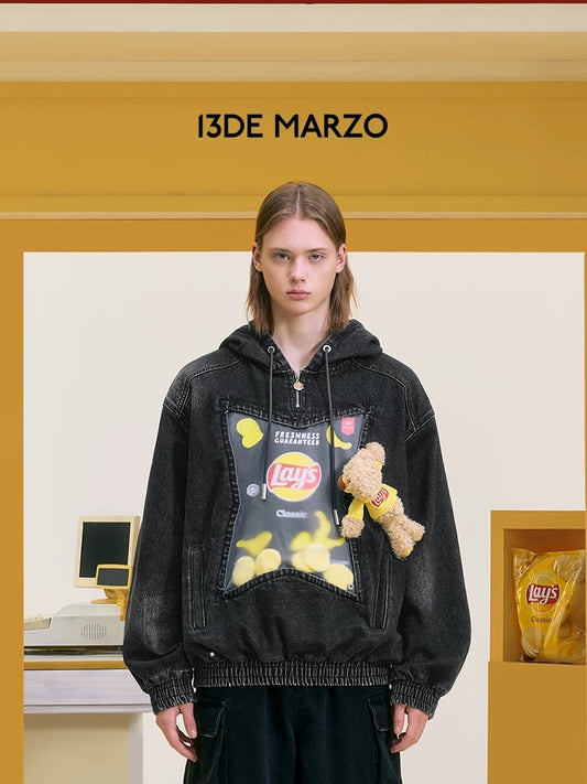 13DE MARZO X Lay's Flavor Bear Denim Hoodie Black