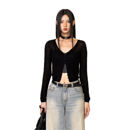 SMFK Compass Classic Woolen Knitted Cardigan In Black