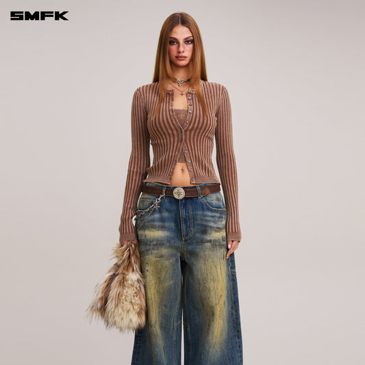 SMFK Vintage-Savage Knit Cardigan/Stone Wash Vanish Brown