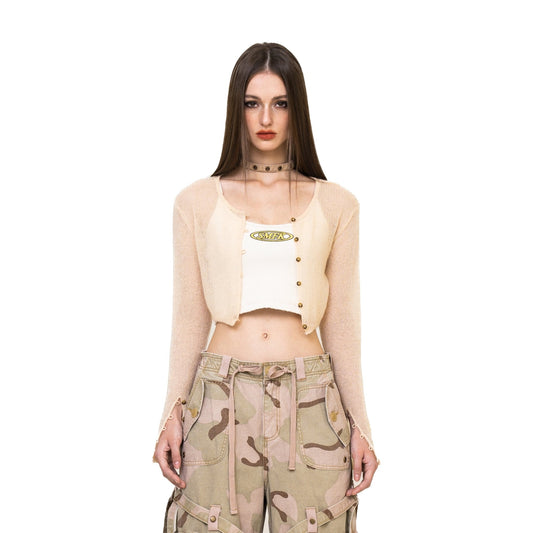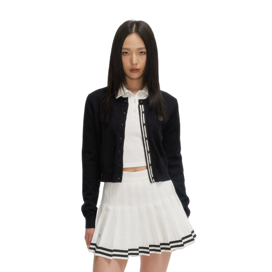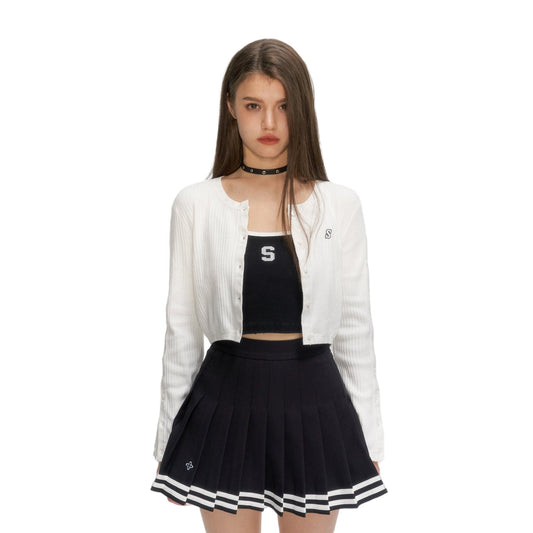 Concise-White Shell Button Long Sleeve Cropped Cardigan and Skirt