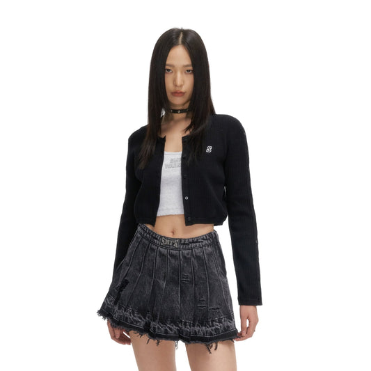 13DE MARZO Plaid Denim Patch Short Sweater High Rise