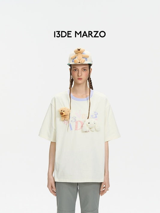 13DE MARZO Bear Gift Bow T-shirt Beige