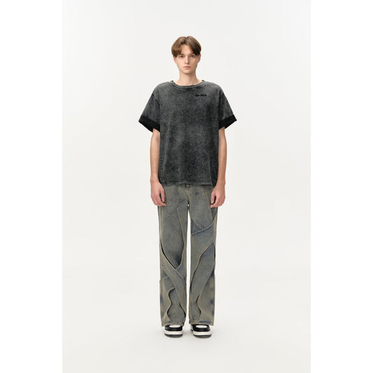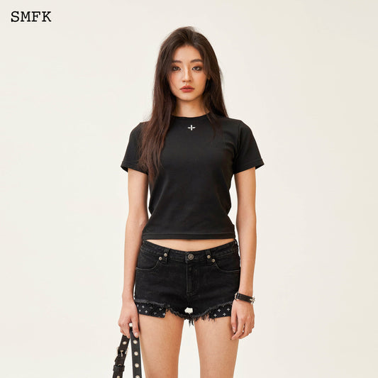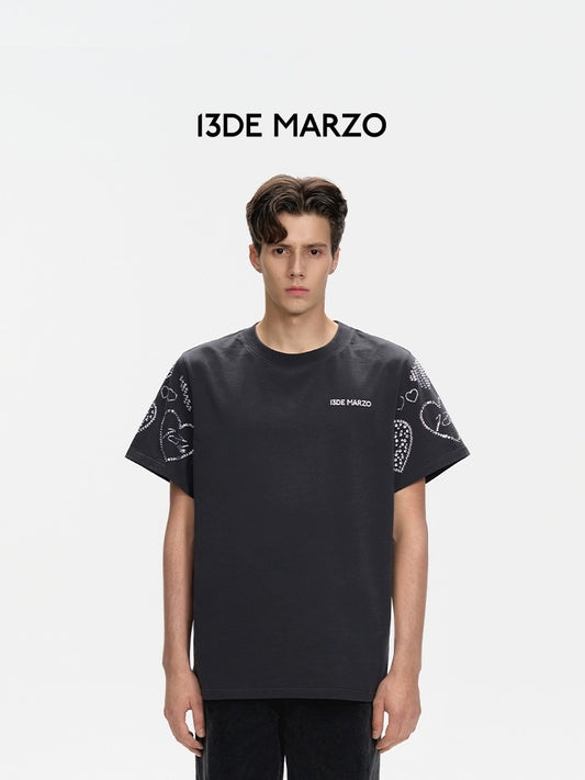 13DE MARZO Washed Sequins Logo T-Shirt Black