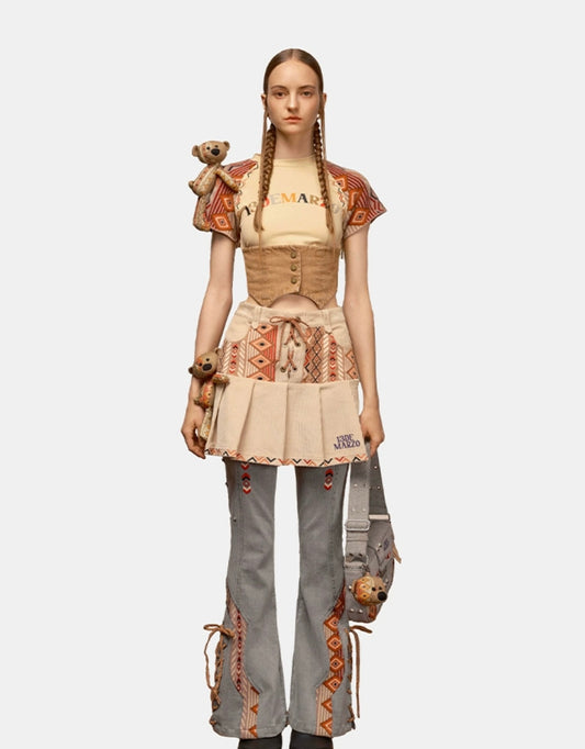 13DE MARZO Tribe Hunting Totem T-shirt Beige