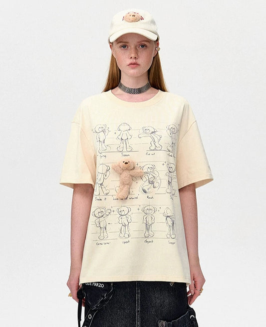 13DE MARZO Bear Movement Sketch T-shirt Beige