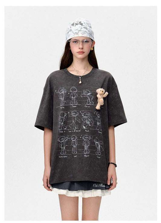 13DE MARZO Bear Movement Sketch T-shirt Dark Grey