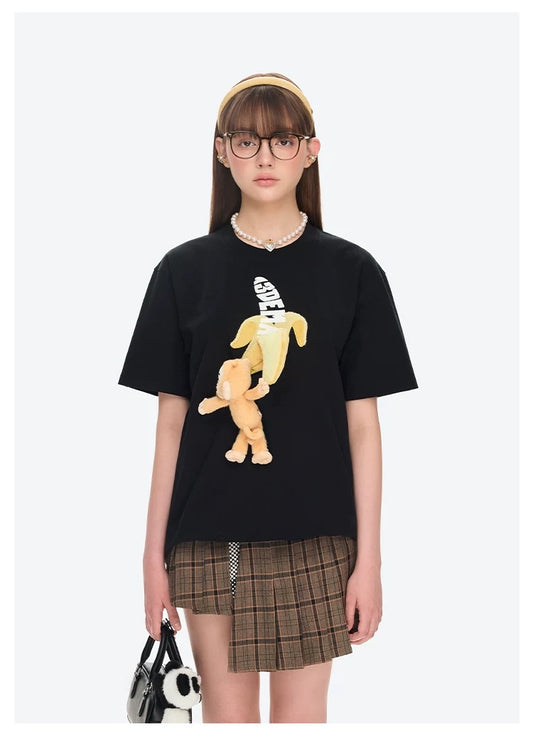 13DE MARZO Monkey Banana Bear T-Shirt Black