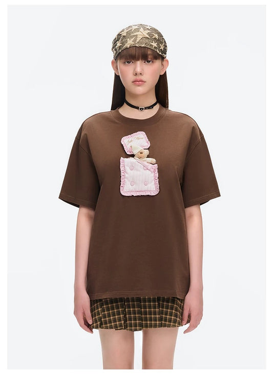 13DE MARZO Sleeping Bear T-Shirt Brown