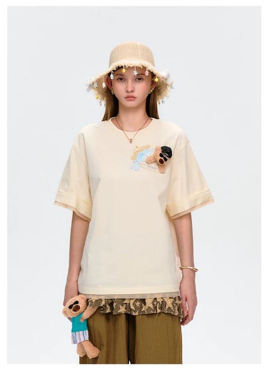 13DE MARZO Bear Lacy Tight Short Top Blue