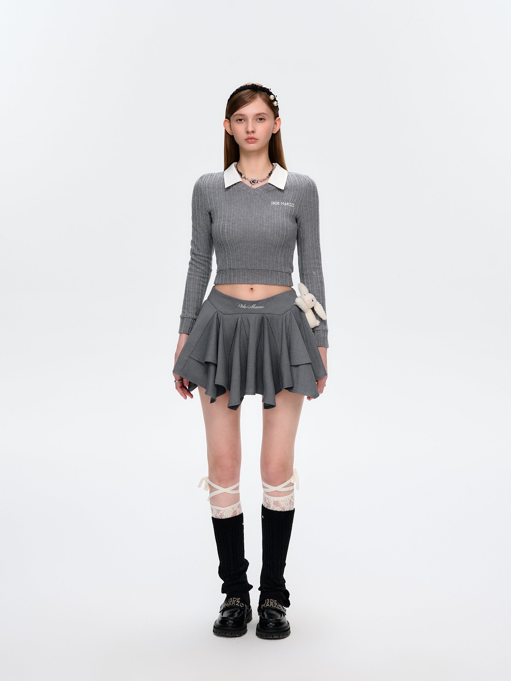 13DE MARZO Asymmetrical Pleated Cake Skort Grey