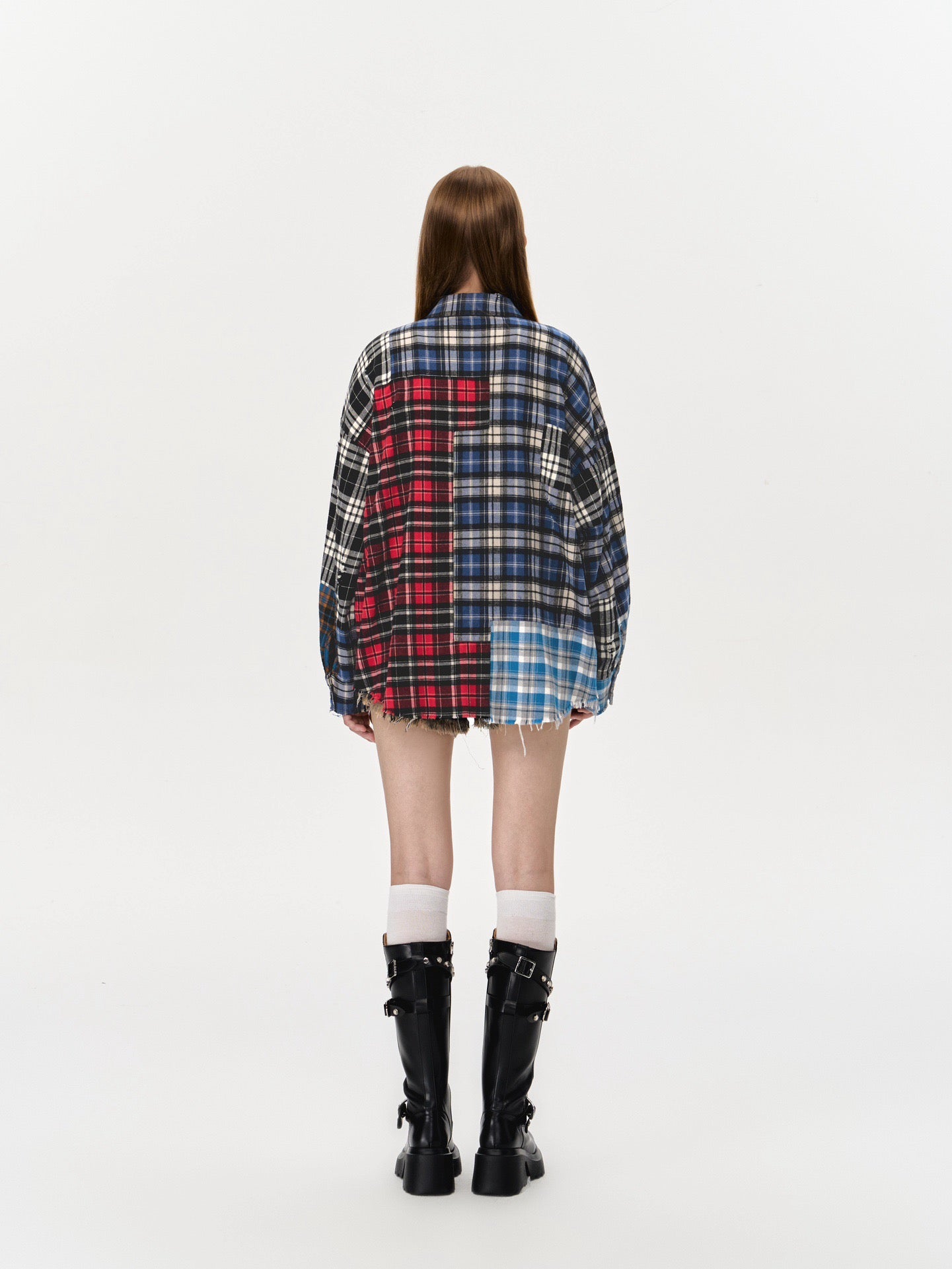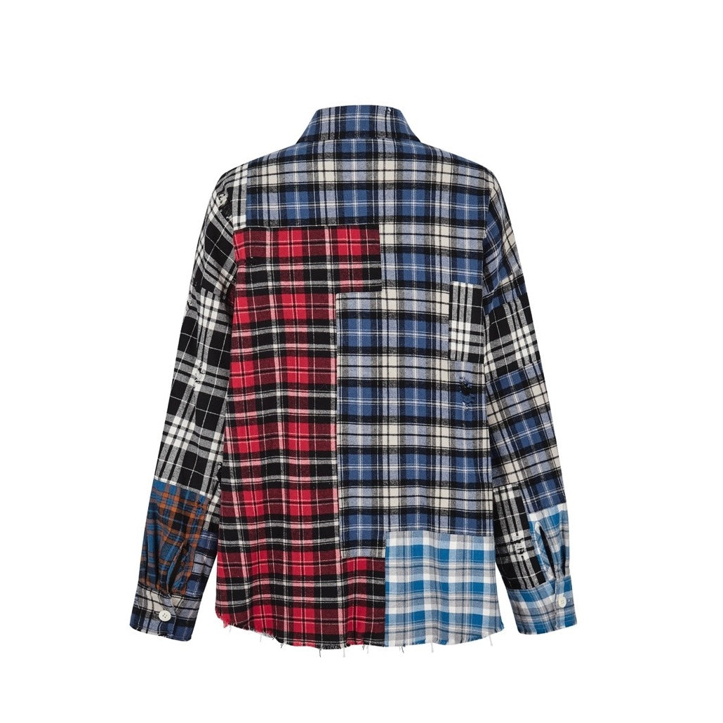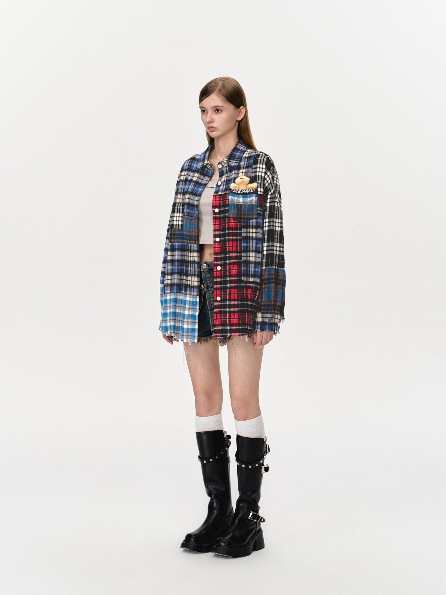 13DE MARZO Bear Broken Plaid Patch Shirt Color Patch
