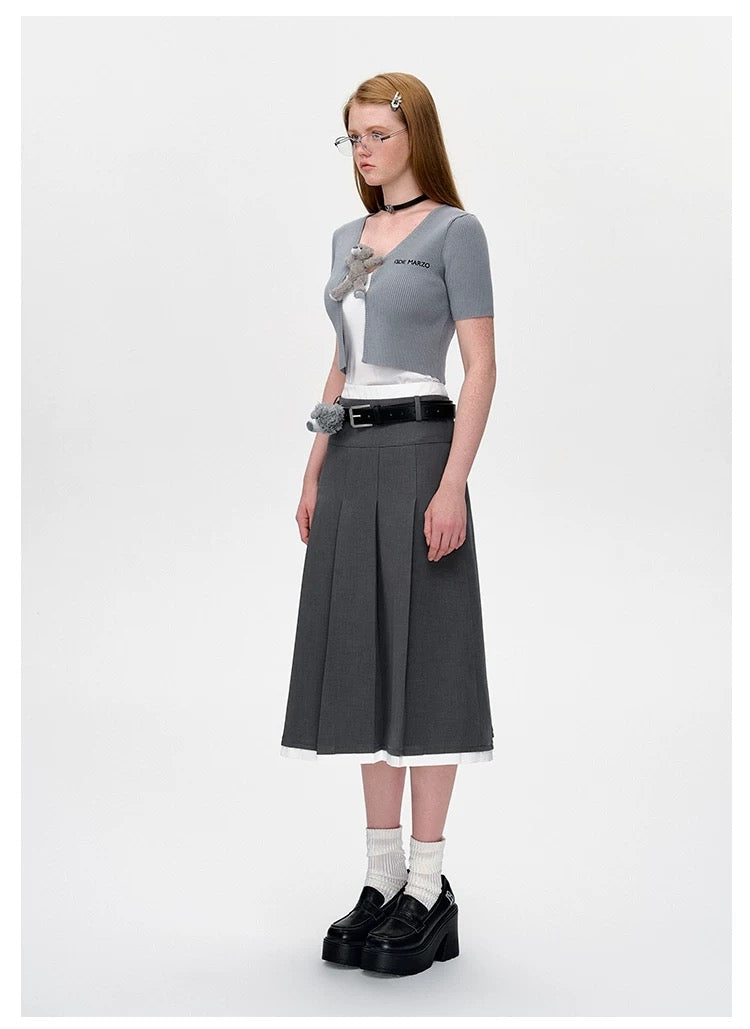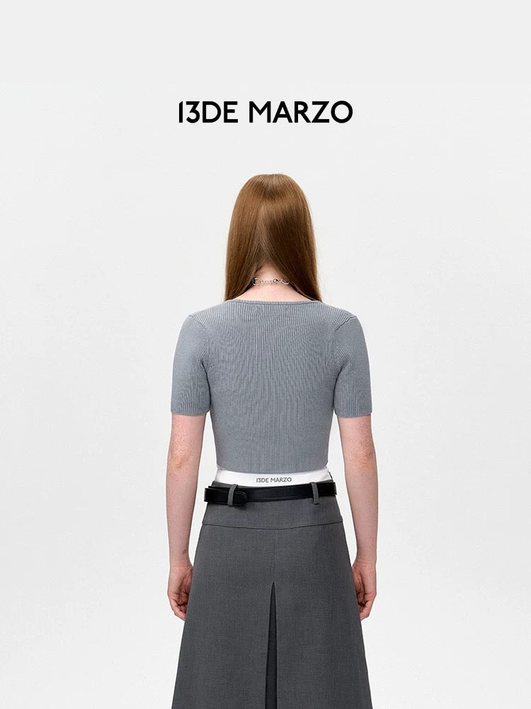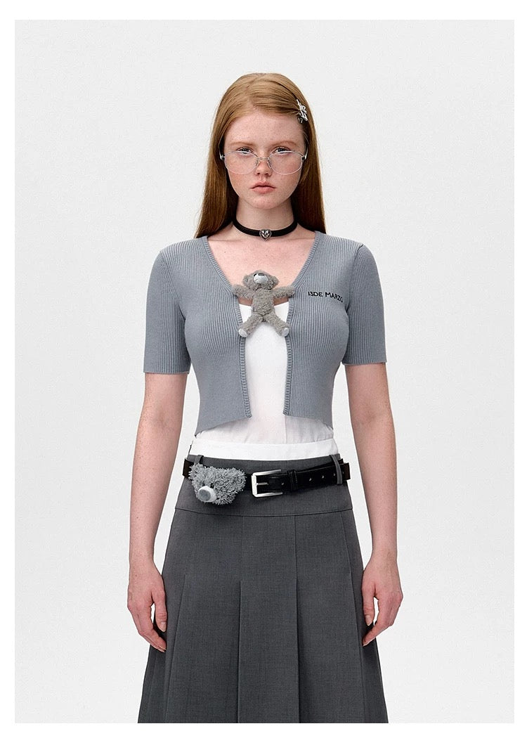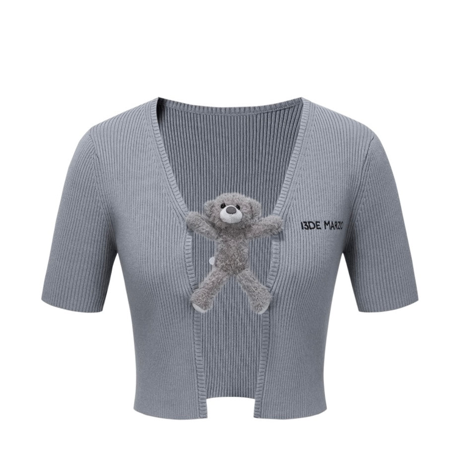 13DE MARZO Bear Buckle Thin Cardigan Grey