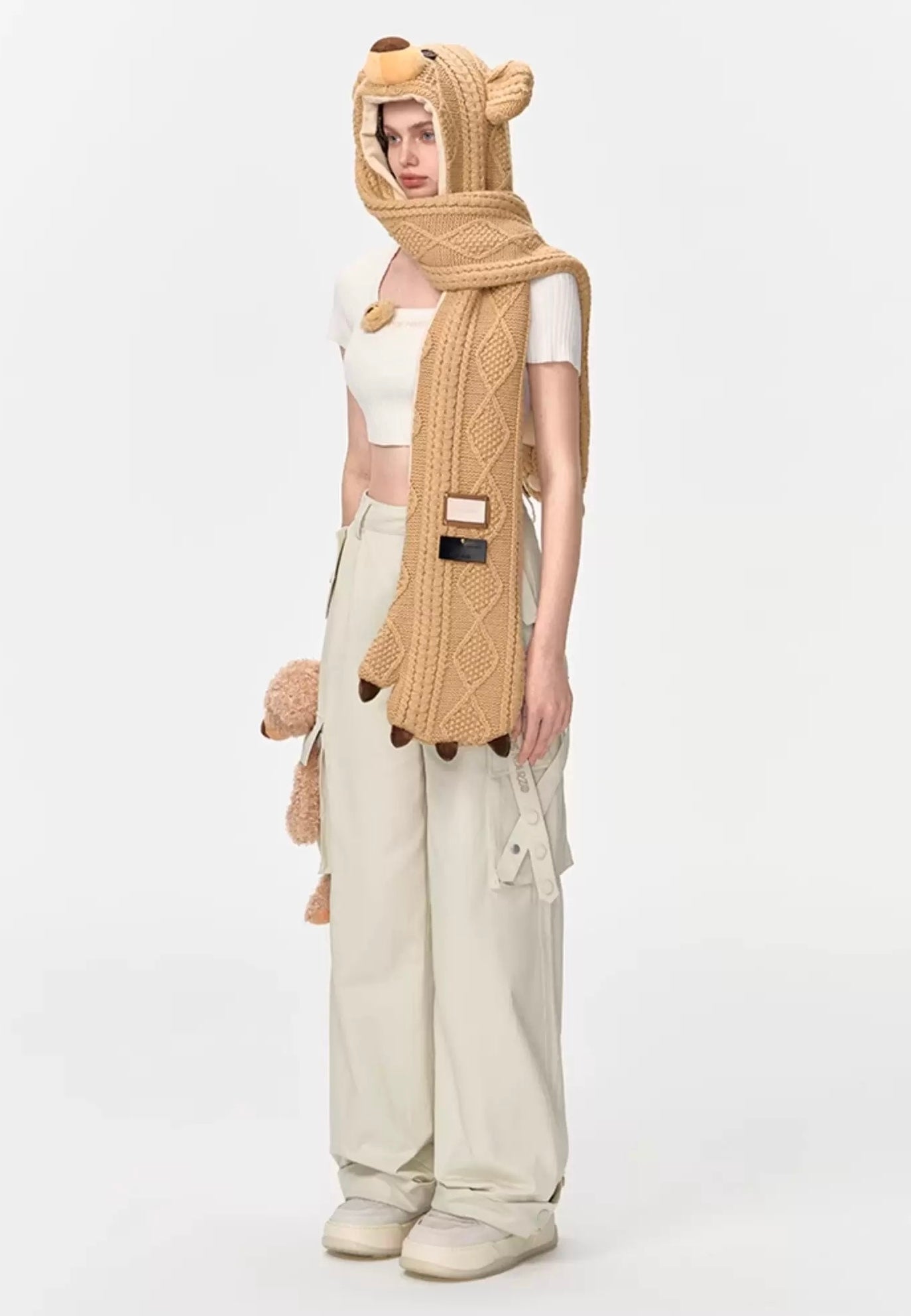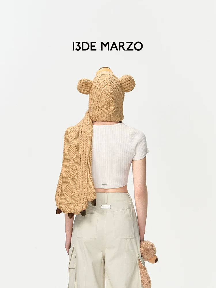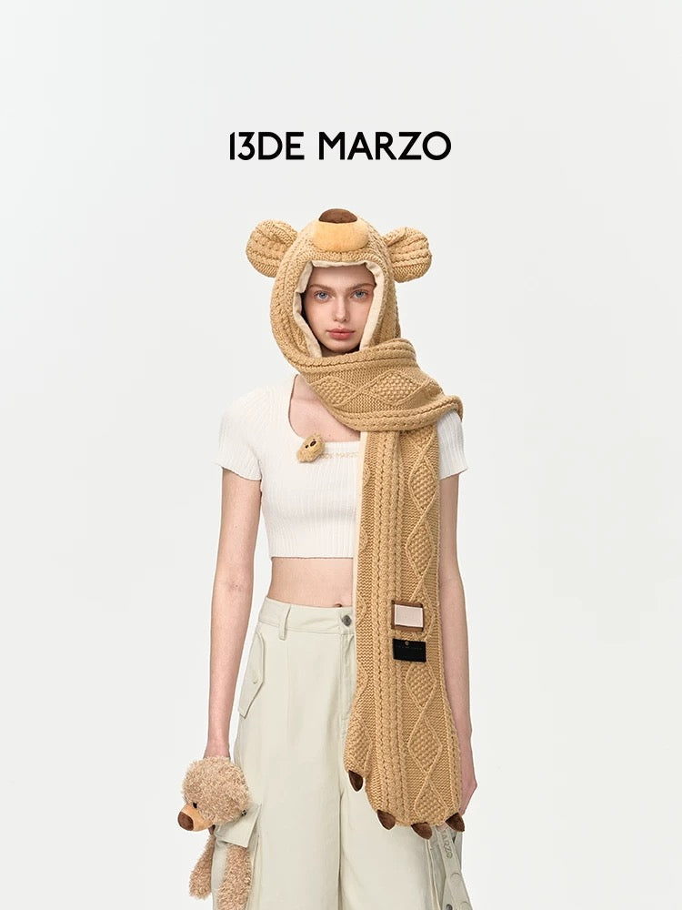 13DE MARZO Bear Head Scarf Khaki